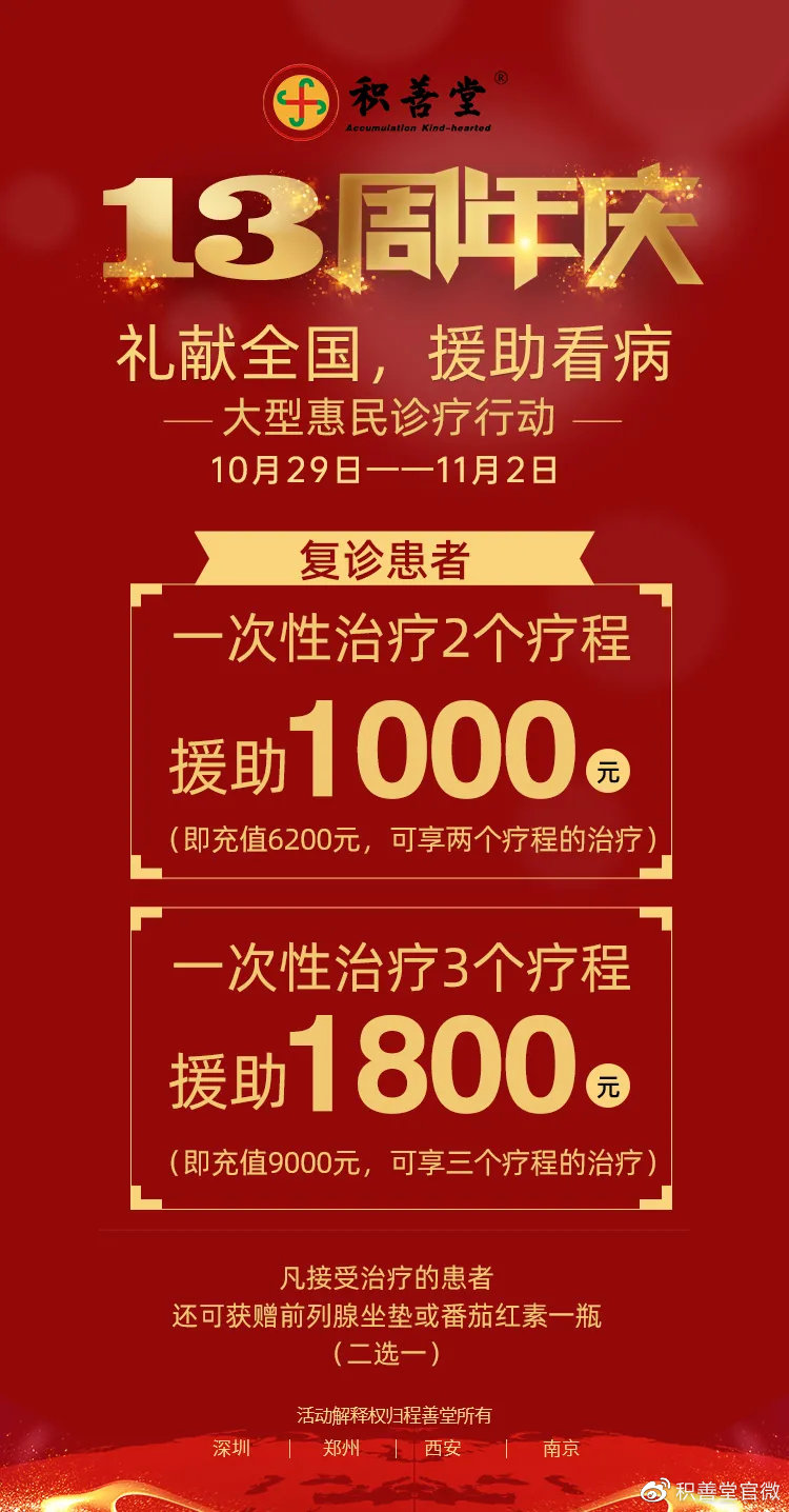 这是属于积善堂的荣耀,这也是这个时代最好的馈赠。一路走来,积善堂的深耕钻研,也收获了众多病友的信任和支持。上万人选择了积善堂,上万人在积善堂恢复了健康重归正常的生活。我们感恩信任,不曾辜负;我们在这个特殊的日子里,为答谢广大患者对积善堂的支持和厚爱,特举办大型惠民诊疗活动:
